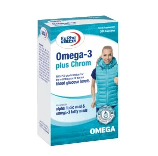 کپسول امگا-3 پلاس کروم یوروویتال  حاوی اسیدهای چرب امگا-3 (EPA  و DHA)، آلفا لیپوئیک اسید و کروم است که به تنظیم قند خون، پیشگیری از بروز نوروپاتی دیابتی و حفظ سلامت عمومی بدن کمک می‌کند.